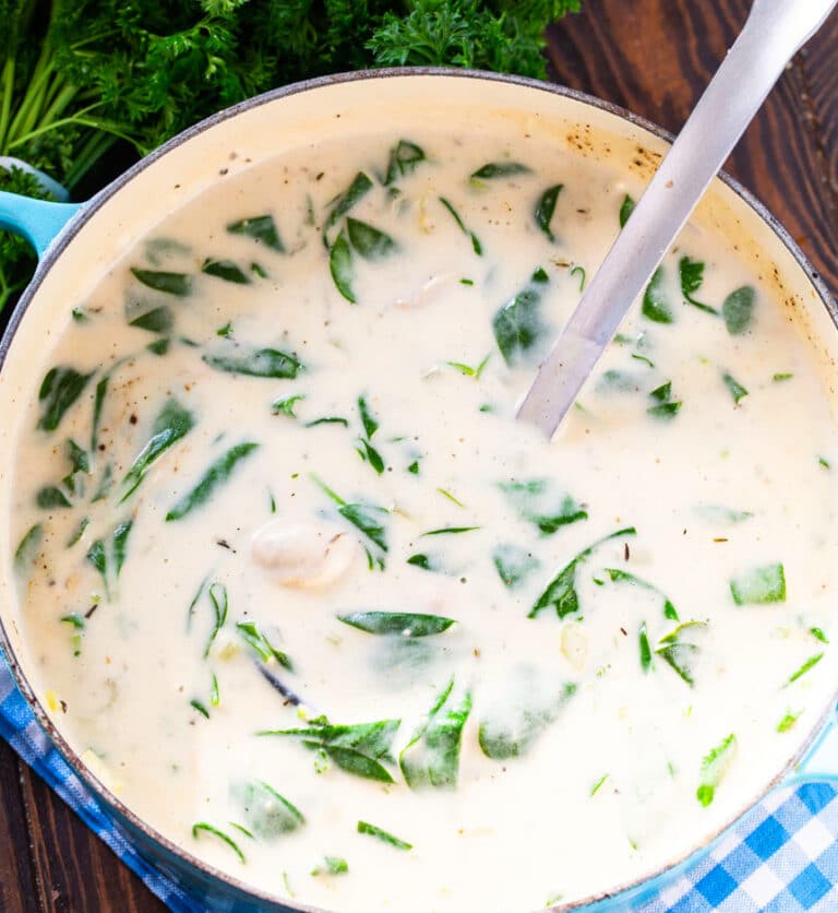Oyster Stew with Brie and Spinach is a modern take on the southern seafood classic. Creamy and comforting, the melted brie makes it a little extra special and spinach is always a great addition to soup. The texture is wonderfully velvety.