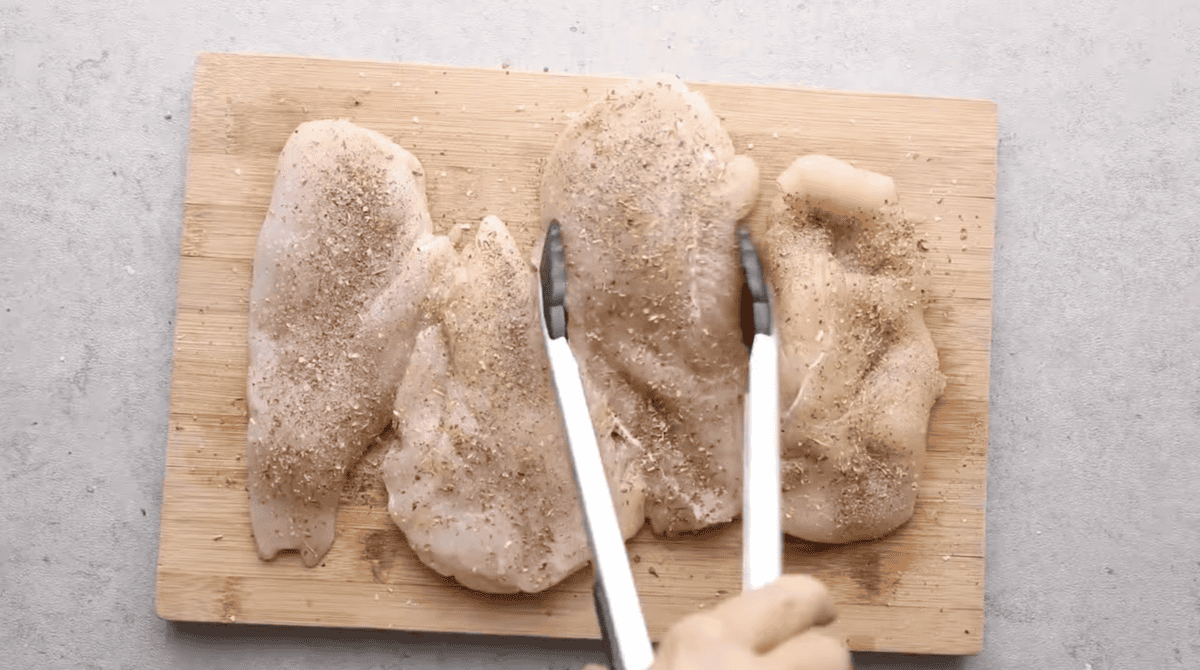 Season each side of each pounded chicken breast with Italian Seasoning and salt and pepper.