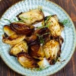 Baked Balsamic Onions on a plate with fresh thyme.